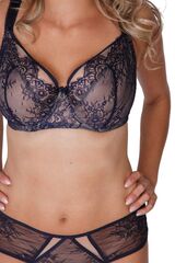 Темно-синий бюстгальтер с мягкой чашкой из кружева с «ресничками»