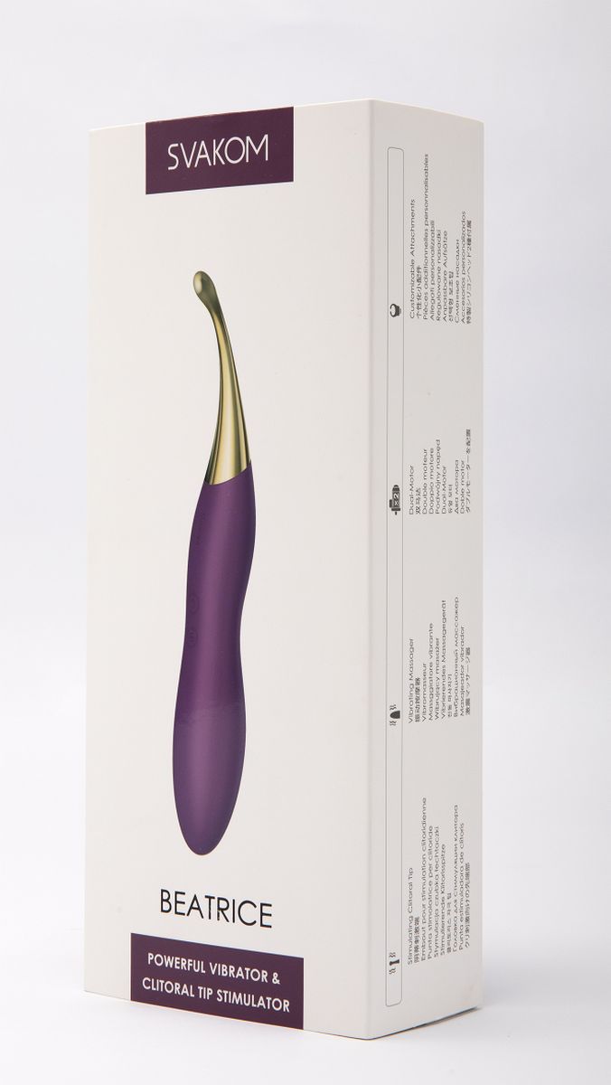 Встречайте Beatrice - элегантное и многофункциональное дополнение к вашей коллекции. Beatrice - это универсальная игрушка для различных видов стимуляции. Сменные насадки помогут вам воплотить ваши фантазии в жизнь и подарить моменты блаженства. Мощный мотор обеспечит стойкую вибрацию (5 режимов и 5 скоростей), даже если вам нравится интенсивная стимуляция. Благодаря защищенному зарядному порту Beatrice не боится непредвиденных ситуаций и станет вашим партнером в любой ситуации и даже в путешествии. Время зарядки - 1 час.