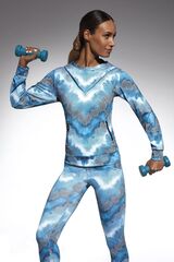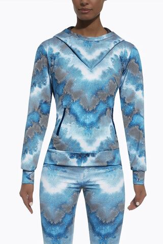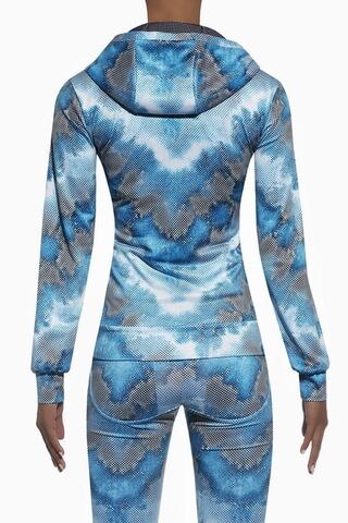 Толстовка с капюшоном для фитнеса свободного кроя Energy blouse изготовлена из полностью непрозрачного, эластичного, корректирующего фигуру материала. Благодаря применению особой химической модификации структуры волокон фирмы ARCHROMA, материал имеет улучшенные свойства пропускания воздуха и отвода влаги с тела. Плотность - 200 ден.