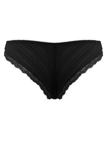 Трусы-бразилиана из микрофибры и узкого кружева. Передняя деталь дублирована хлопком. Высота бочка 4 см, средняя посадка.