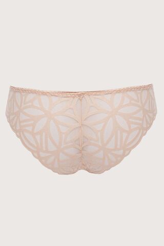 Трусики-бразилиана Sugar Dune выполнены из роскошного кружева с геометрическим узором. Ластовица проложена 100% хлопком телесного цвета. Натуральная палитра делает бельё практически невидимым на коже, а плоское плетение кружева гарантирует его незаметность под одеждой, геометрический узор кружева напоминает мягкие линии дюн, созданных из карамельно-пудрового песка. Внимание: европейские размеры! Для определения российского размера необходимо прибавить 6!