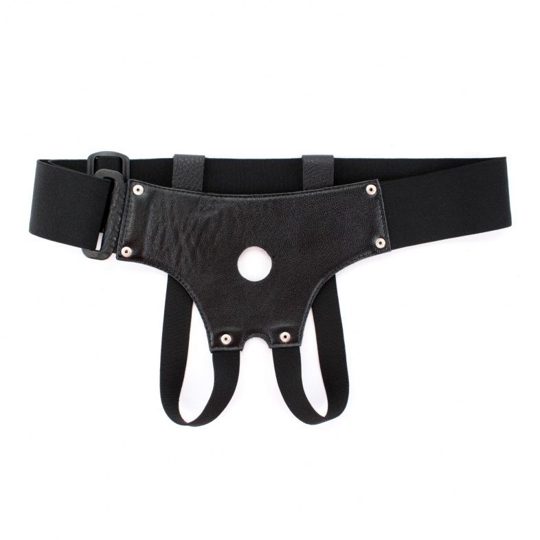 Трусики для страпона, изготовлены из кожи, имеют отверстие-доступ в области бикини. Крепятся при помощи широких эластичных лент. Трусики джоки обеспечивают доступ к интимным зонам. Размер удобно регулируется, подойдет на 42-46. Максимально комфортный аксессуар разнообразит любую БДСМ игру. Диаметр отверстия для страпона - 2,5 см.