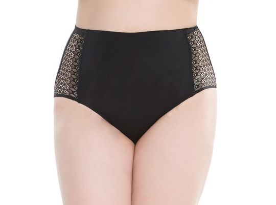 Трусы Opal с высокой линией талии, с боковыми деталями из кружева с геометрическим узором. Ластовица проложена 100% хлопком.