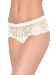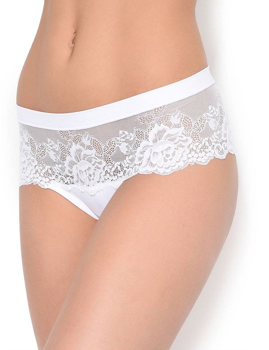 Трусы-шорты со средней линией талии выполнены из плоского высокоэластичного цветочного кружева с бесшовным краем, что делает их совершенно не заметными под одеждой. Пояс обработан мягкой окантовкой. Ластовица выполнена из уникального хлопкового материала.