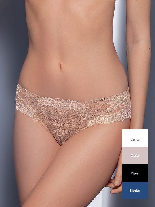 Трусики-слип из мягкого кружева с объемным, ярко-выраженным рисунком. Декоративная шнуровка на спинке добавляет нотку игривости модели.