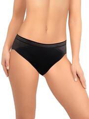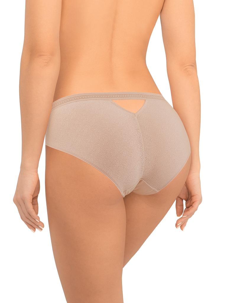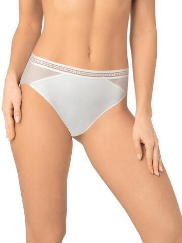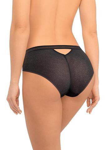 Трусы-слипы со средней линией талии. Передняя деталь выполнена из микрофибры, задняя деталь из кружева с сетчатой структурой. На задней детали пикантное «окошко». Широкая декоративная резинка, использованная для обработки талии, придает изделию ультрамодное звучание. Хлопковая ластовица.