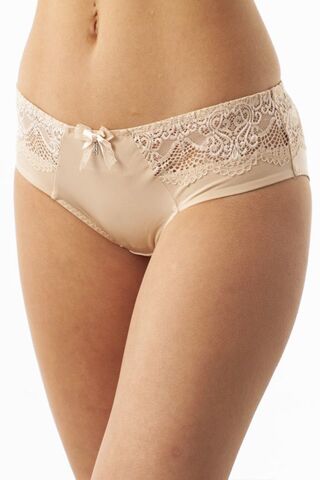 Трусы-слип со средней линии талии, выполнены из эластичного полотна. На передней и задней деталях вставки из эластичного кружева. В верхней части задней детали большая вставка из эластичного кружева. Срезы пройм обработаны мягкой эластичной лентой на плоскошовной машине. Украшение: бантик с подвеской. Внимание: европейские размеры! Для определения российского размера необходимо прибавить 6!
