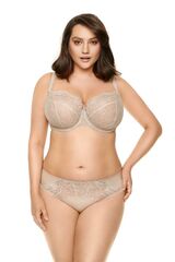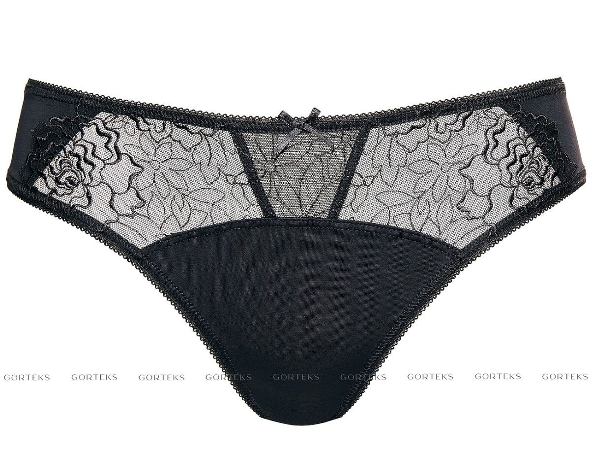 Трусики-слипы Pamela спереди из эластичной ткани, со вставкой из сетки с вышивкой, спинка из сетки, сложенной вдвое. Ластовица проложена 100% хлопком. Внимание: европейские размеры! Для определения российского размера необходимо прибавить 6!