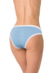 Трусы со средней линией талии, выполнены из мягкого хлопка с эластаном. Верхний срез обработан широкой, плоской резинкой, ножки окантованы узким кружевом. Принт с растительным рисунком. Декор - бантик.