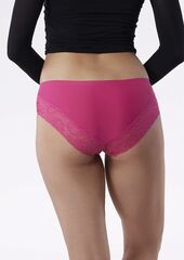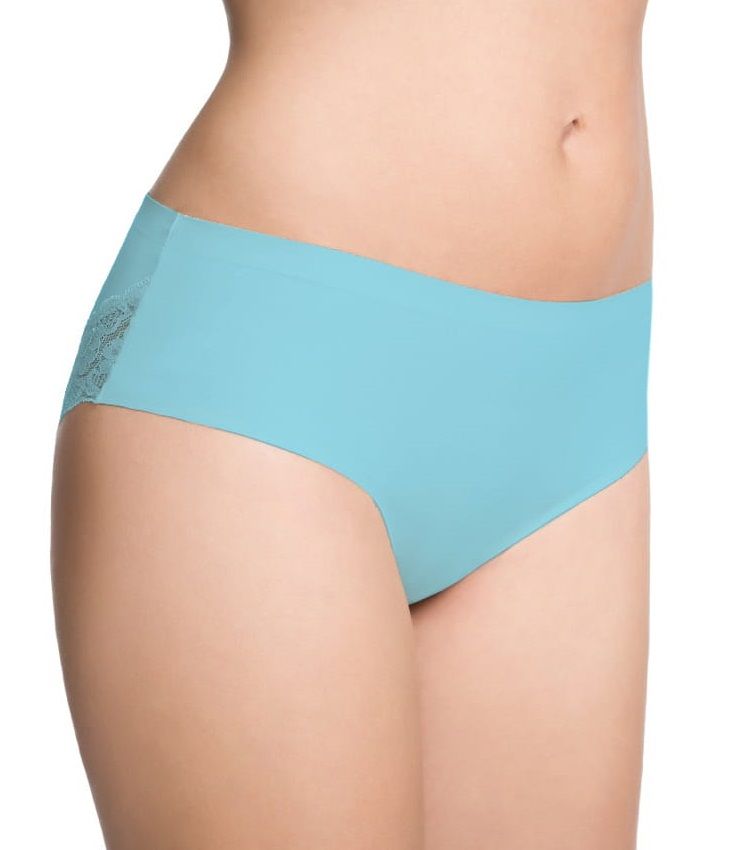 Трусики выполнены из дышащей современной ткани по технологии Invisible-Line (ультратонкая обработка краёв ткани). Задняя полочка, по проймам для ног, украшена кружевом, ластовица проложена 100% хлопком. Трусики не заметны под одеждой.