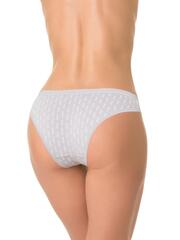 Трусы со средней линией талии, выполнены из мягкого принтованного хлопка со спандексом. Фантазийный принт. Вырез ножки обработан эластичной тесьмой в цвет изделия. Талия отделана узкой кружевной резинкой. Хлопковая ластовица.