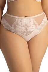 Трусики-слипы со средней линией талии 2155 Fiesta выполнены в пудровом цвете shimmer: спинка из эластичного трикотажного полотна, спереди из сетки и кружева, проймы ног из кружева. Восхитительное, мерцающее серебристым, нежно-розовое кружево изящно смотрится на загорелой коже. Ластовица проложена 100% хлопком.