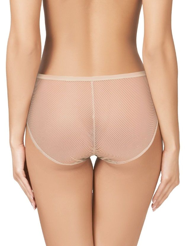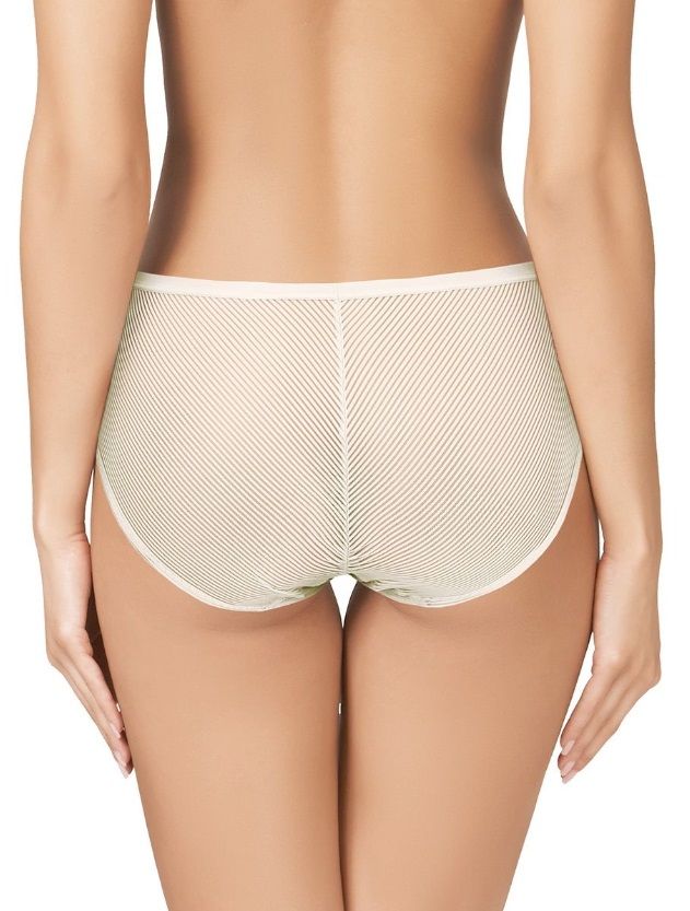 Трусики-слипы со средней линией талии имеют минималистскую отделку без резинок, очень плоские и незаметные благодаря необычайной эластичности самой ткани. Выполнены из мягкой эластичной сетки и микрофибры.