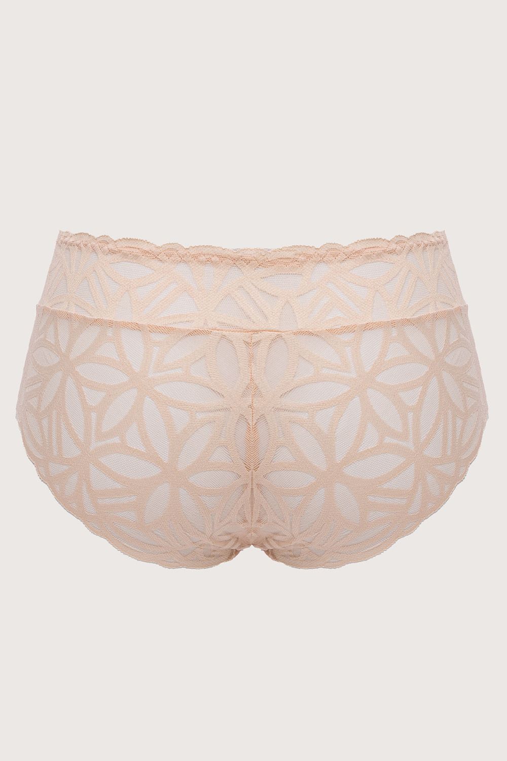 Трусики-слипы Sugar Dune выполнены из роскошного кружева с геометрическим узором. Ластовица проложена 100% хлопком телесного цвета. Натуральная палитра делает бельё практически невидимым на коже, а плоское плетение кружева гарантирует его незаметность под одеждой, геометрический узор кружева напоминает мягкие линии дюн, созданных из карамельно-пудрового песка. Внимание: европейские размеры! Для определения российского размера необходимо прибавить 6!