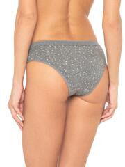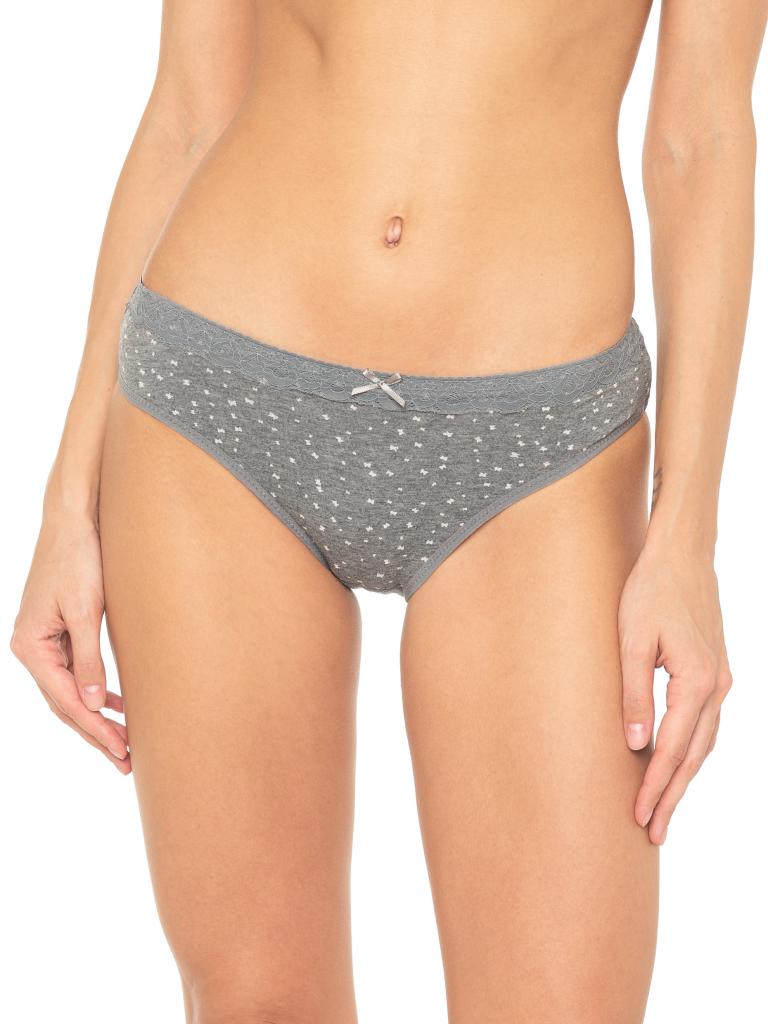 Трусы со средней линией талии, выполнены из мягко принтованного хлопка со спандексом. Контрастный принт с изображением бабочек. Вырез ножки отделан тесьмой в цвет изделия, талия - широким кружевом в цвет изделия. Декор - атласный бантик. Хлопковая ластовица.