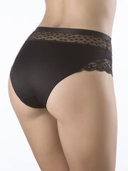 Трусы со средней линией талии. Линия бедра закрыта. Тонкая лента – пояс с сатиновым блеском по талии. Срез ножек обработан мягкой эластичной лентой. Внимание: европейские размеры! Для определения российского размера необходимо прибавить 6!