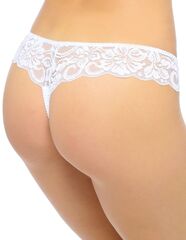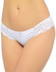 Трусики-стринг, комбинированные из мягкой эластичной ткани и кружева. Спереди украшены бантиком и жемчужной капелькой, сзади напоминают изящный кружевной пояс.