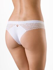 Миниатюрные трусики-танга. Перед изделия украшает кружево. Тонкий срез ножек делает изделие невидимым под одеждой. Передняя деталь продублирована хлопком со скрытыми внутренними швами – это придает изделию красивый эстетичный вид. Внимание: европейские размеры! Для определения российского размера необходимо прибавить 6!