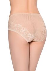 Трусы-утяжка со средней линией талии из эластичной сетки с укрепленной передней частью. Степень коррекции STRONG. Высота бочка 10 см. Изюминка коллекции - цветочный дизайн кружева и плоские фестоны по ножке, совершенно не заметны под одеждой. Ластовица выполнена из уникального хлопкового материала.