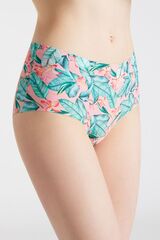 Трусы Hawaii с высокой линией талии выполнены из дышащей современной ткани по технологии Invisible-Line (ультратонкая обработка краёв ткани) с цветочным принтом в виде гавайских цветов на розовом фоне. Ластовица проложена 100% хлопком.