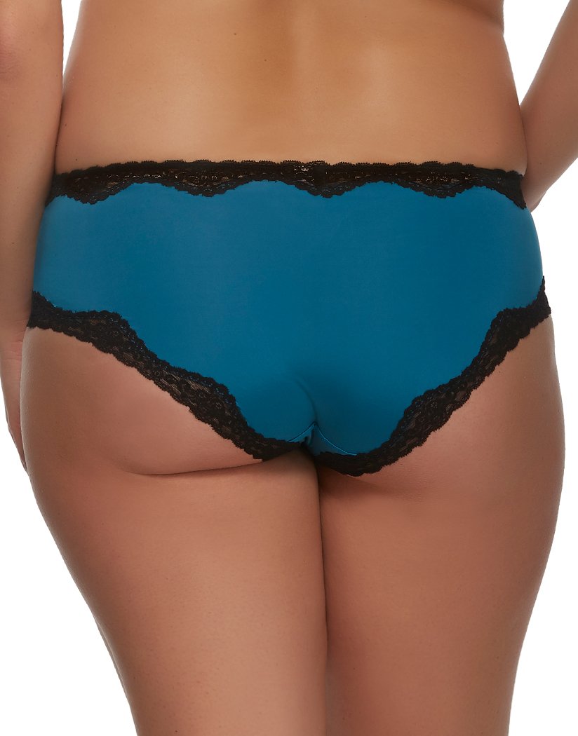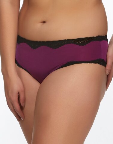 Трусы-хипстеры из мягкой и эластичной микрофибры. Линия талии и вырезы по линиям бедер отделаны контрастной кружевной резинкой. Ластовица: 100% хлопок.