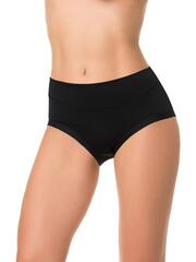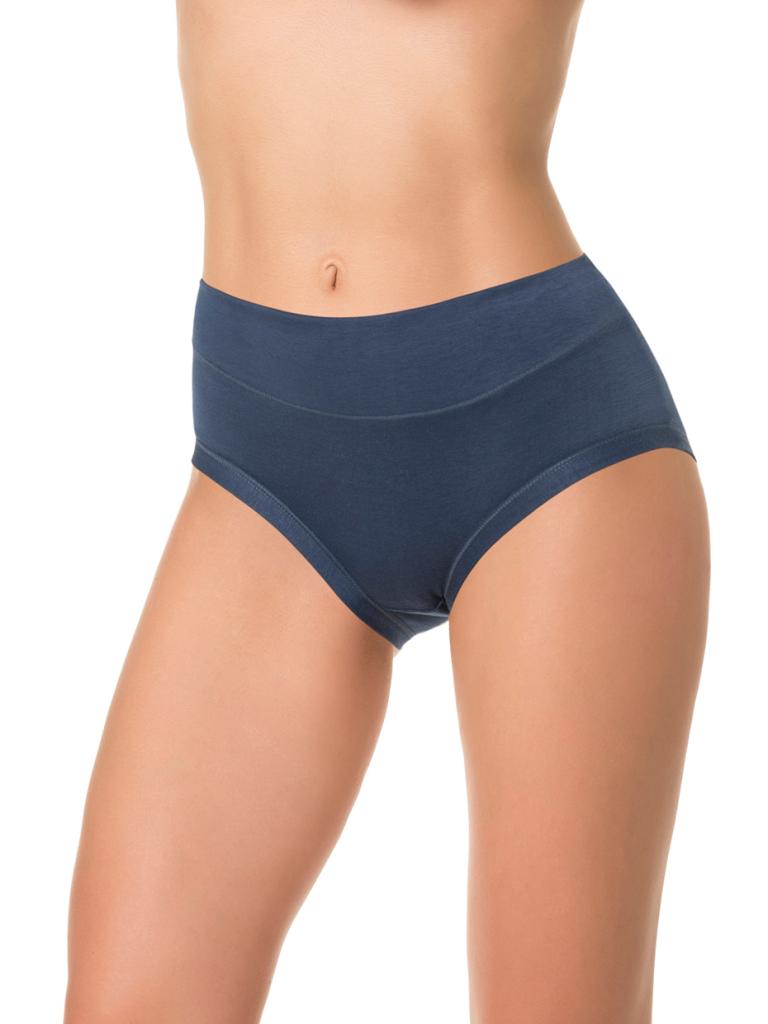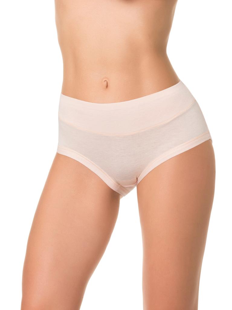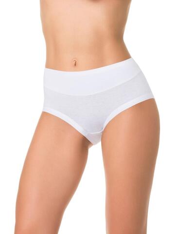 Трусы с высокой линией талии, выполнены из деликатного хлопкового полотна. Вырез ножки обработан вподгибку основным полотном . Талия на передней части изделия продублирована основным полотном, что создает легкий корректирующий эффект.