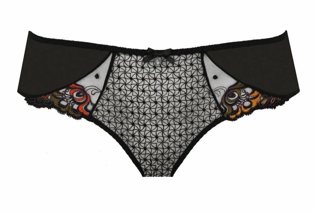 Шорты являются обязательной составляющей каждой новой коллекции. Яркая вышивка и эластичный тюль с очаровательными складочками сзади подчеркивают соблазнительный вид изделия, а блестящий страз спереди, обтянутый тюлем, привносит нотку гламура.