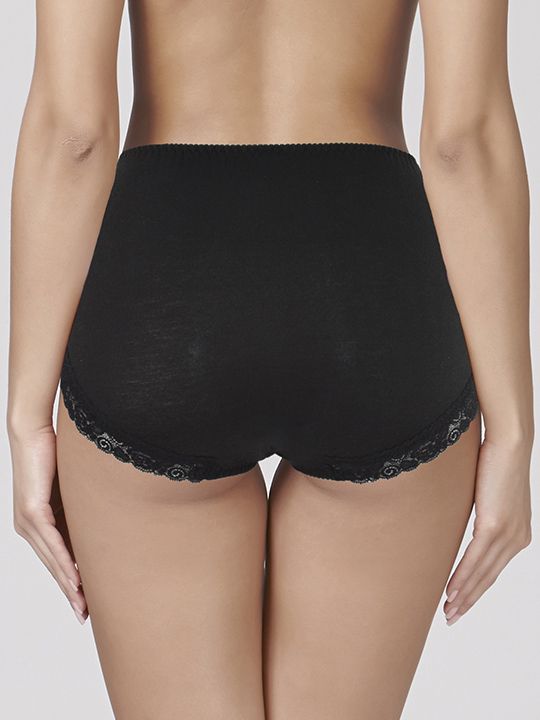 Трусы-слипы с высокой линией талии из мягкого экологически чистого волокна лиоцелл на ощупь похожего на вискозу. Высота бочка 17 см. Линия открытия ноги сзади из мягкого цветочного кружева с бесшовным краем. Внимание: корейские размеры! См. размерную сетку производителя.
