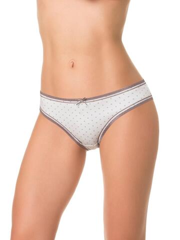 Трусы со средней линией талии, выполнены из мягкого хлопка с эластаном. Все края обработаны декоративной эластичной тесьмой. Мелкий принт. Декор - бантик.