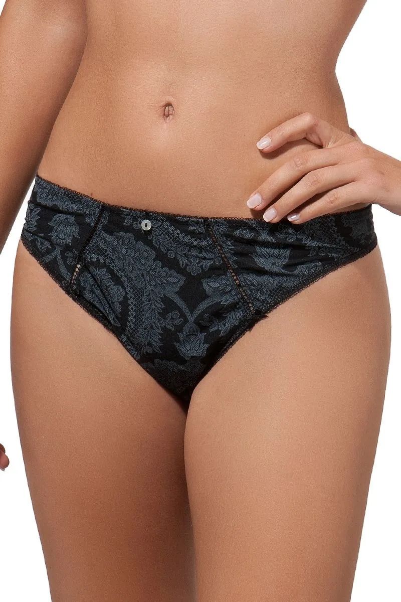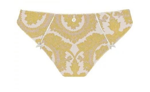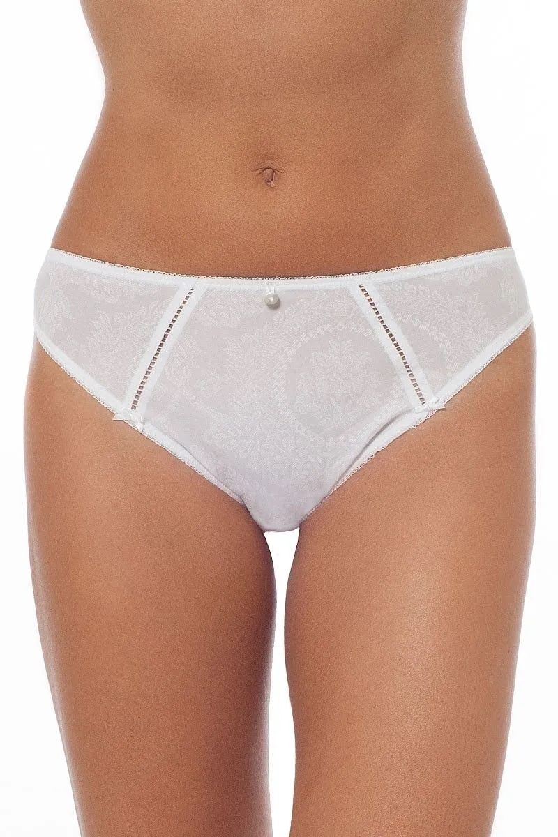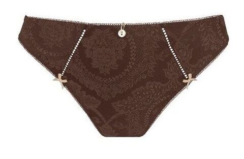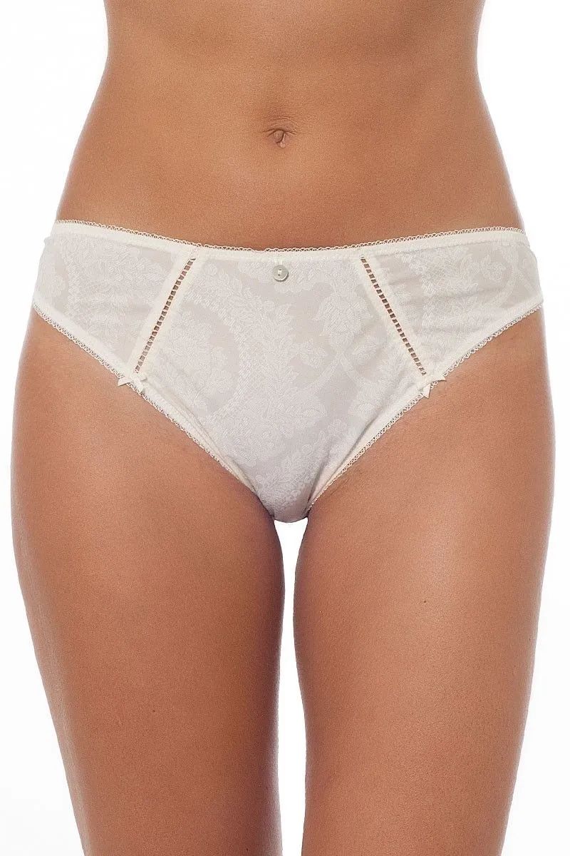 Трусы - стринги. Края модели обработаны плоским швом для максимального комфорта. Украшением служит крошечная пуговка из натурального перламутра спереди и декоративная вставка из кружева «Шантильи» на задней части. Ластовица из хлопка.