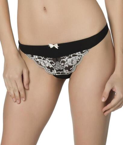 Кокетливые трусы-стринги с низкой посадкой. Сочетание изящной швейцарской вышивки на тюле и однотонного стреч-жоржета. Ластовица: 100% хлопок.