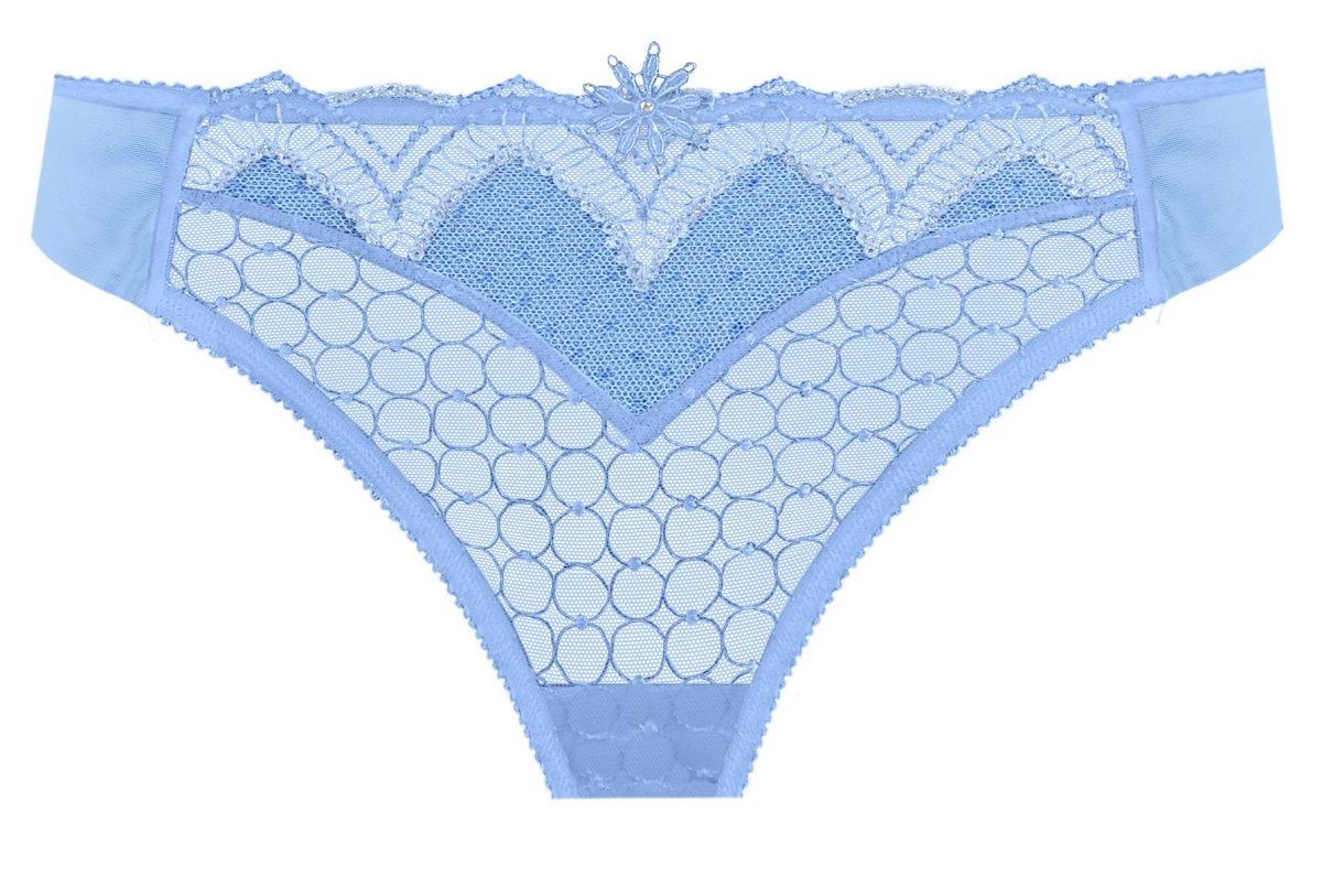 Эластичная передняя часть стрингов украшена вышитым геометрическим узором и фестончатой каймой, придающими им легкость и воздушность.