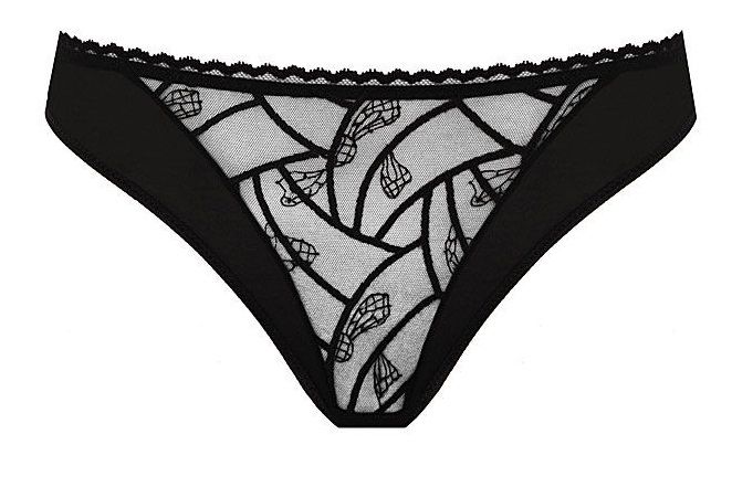 Стринги средней посадки из серии Vivienne, состоящие из тюля и оригинальной вышивки с графическими узорами.