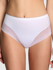 Трусы-утяжки с завышенной линией талии из эластичной, упругой микрофибры спереди и сетки с бесшовным краем сзади и по линии открытия ноги с эффектом танга, что делает их совершенно не заметными под одеждой. Высота бочка 14 см. Ластовица выполнена из уникального хлопкового материала.
