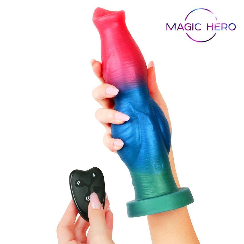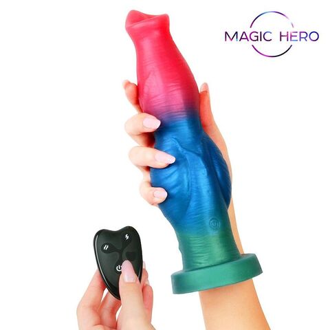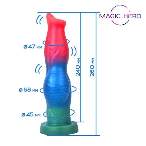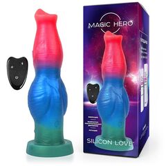 Цветной фантазийный вибратор с возвратно-поступательными движениями и ротацией - 26 см.