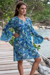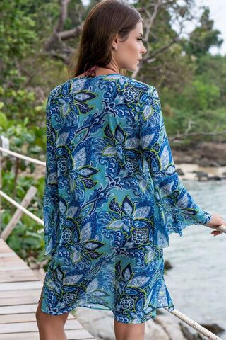 Короткая туника Felina с длинным рукавом выполнена из трикотажной мелкой принтованной сетки. Ультрамодные рукава туники, эффектно расклешенные к низу. Горловина декорирована планкой на пуговичках в тон ткани.
