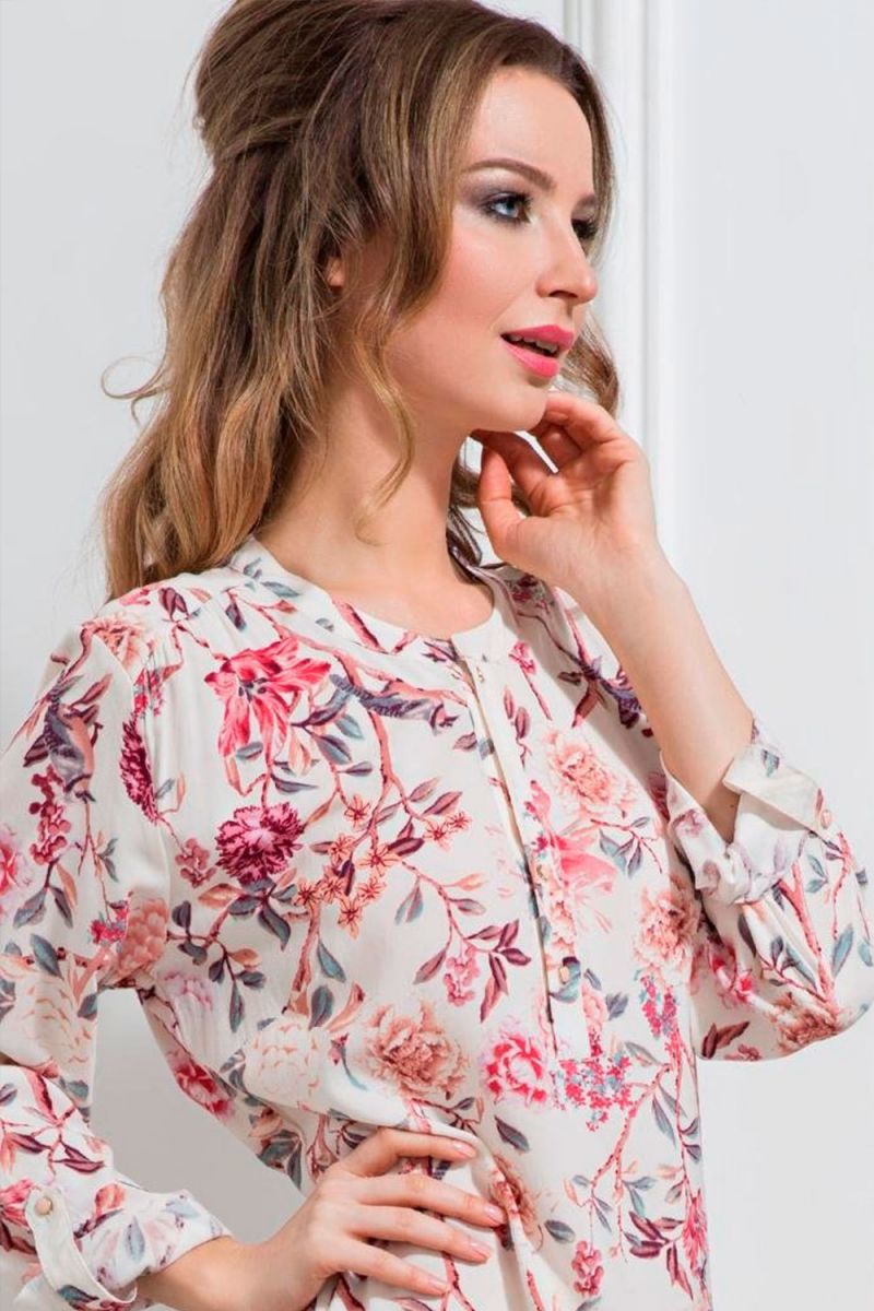 Туника Paradise с длинным рукавом регулируемой длины выполнена из принтованного хлопкового полотна с добавлением бамбука. По переду туники декоративная планка на пуговицах.