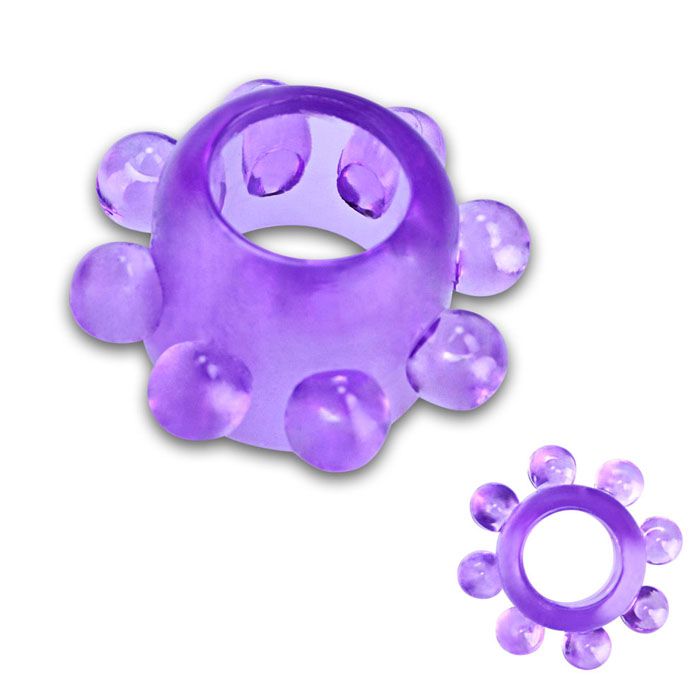 Тянущееся кольцо из фиолетовой эластичной термопластичной резины на пенис со стимулирующими элементами для обоих партнеров. Одевается на основание пениса, а массажные шарики позволят немного изменить ощущения при классическом контакте с партнером.