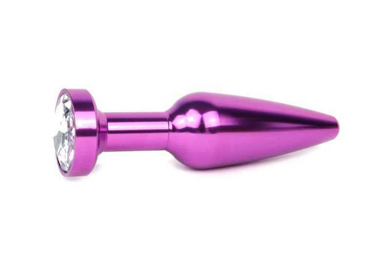 Удлиненная коническая гладкая фиолетовая анальная втулка с прозрачным кристаллом - 11,3 см.