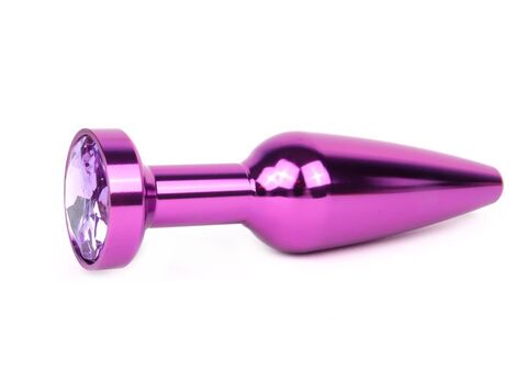 Удлиненная коническая гладкая фиолетовая анальная втулка с сиреневым кристаллом - 11,3 см.