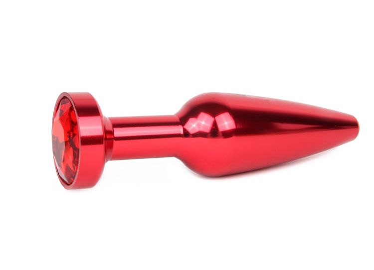 Удлиненная коническая гладкая красная анальная втулка с красным кристаллом - 11,3 см.