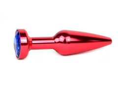 Удлиненная коническая гладкая красная анальная втулка с синим кристаллом - 11,3 см.