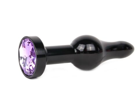 Удлиненная шарикообразная черная анальная втулка с сиреневым кристаллом - 10,3 см.
