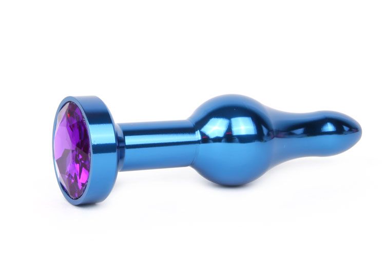 Удлиненная шарикообразная синяя анальная втулка с кристаллом фиолетового цвета - 10,3 см.