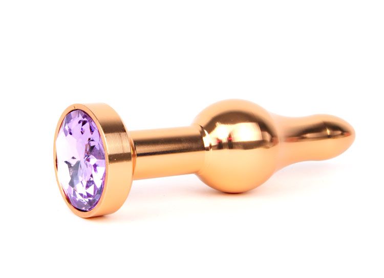 Удлиненная шарикообразная золотистая анальная втулка с сиреневым кристаллом - 10,3 см.