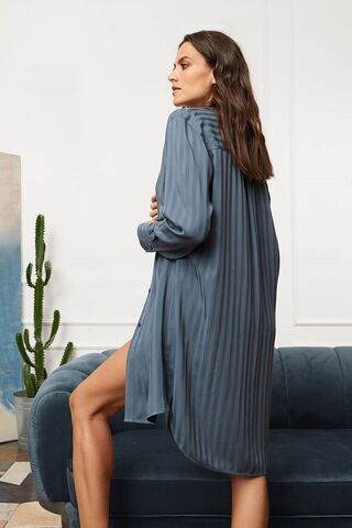 Удлиненная туника-рубашка на пуговицах свободного кроя. Выполнена из натуральной поливискозной ткани в изящную монотонную вертикальную полоску. Свободный крой не стесняет в движениях. Воротник с отворотами. Рукава заканчиваются изящными манжетами на пуговицах. Элегантная модель, позволяющая чувствовать себя одновременно комфортно и привлекательно.