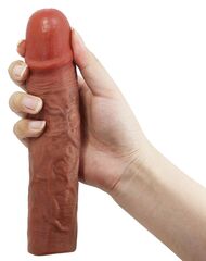 Насадка из TPR добавляет размер и реалистичность. Прирост длины - 7,6 см. Вены и объёмная головка на внешней стороне стимулируют партнёра естественно. Гладкий внутренний канал обхватывает член, усиливая ощущения.