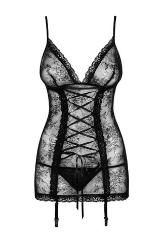 Эротичный корсаж с подвязками и пикантной шнуровкой спереди, плюс трусики стринги в комплекте. В комплекте: корсаж, трусики-стринг.