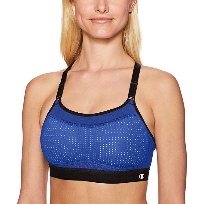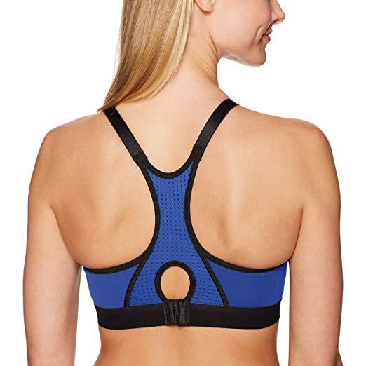 Спортивный бюстгальтер для бега, баскетбола и аэробики. Особая ткань Double Dry, в сочетании со вставкой из ткани в сетку на центральной панели, контролируют влагоотведение и воздухопроницаемость. Бесшовные бескаркасные чашки, с внутренними дополнительными вставками-лепестками, не просвечивают. Высокая центральная панель обеспечивает дополнительную поддержку во время интенсивных тренировок. Широкие боковые и задняя панели плотно прилегают и сглаживают неровности. Эластичная широкая лента по нижнему краю бюстгальтера - для идеальной подгонки. Шелковистые малоэластичные бретели регулируются спереди. Т-образная спинка с застежкой на крючках не ограничивает движения.