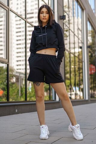 Укороченное худи с капюшоном. Рукава и нижняя кромка отделаны трикотажной резинкой, на груди фирменный логотип белого цвета.